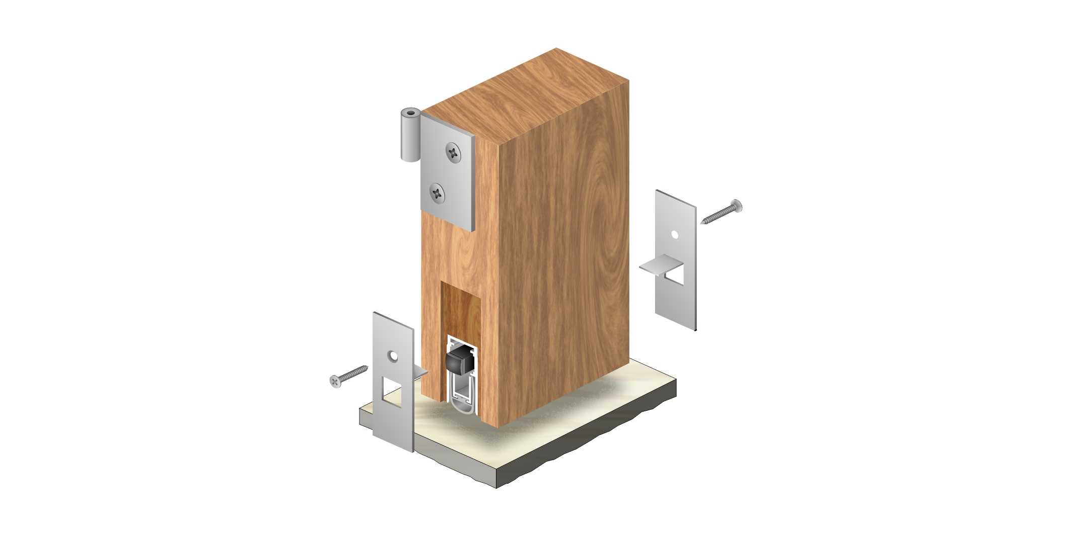 嵌入式門底自動升降式密封器,四連桿機構,適用于門扇內開槽的門。安裝時需在門底加工一條30mm*15mm的通槽,將產品放置其中,將兩端蓋板和密封器用螺絲固定,使用本產品不影響門的整體風格。