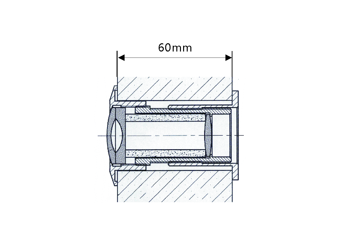 防火門鏡結(jié)構(gòu):防火門鏡由門鏡外套、門鏡芯套、門鏡內(nèi)套、物鏡鏡片組、目鏡片(目鏡片安裝在芯套內(nèi)) 組成,如圖1所示。(為不影響門鏡成像效果請(qǐng)不要隨意 拆裝門鏡各部件,否則將影響其光學(xué)效果)