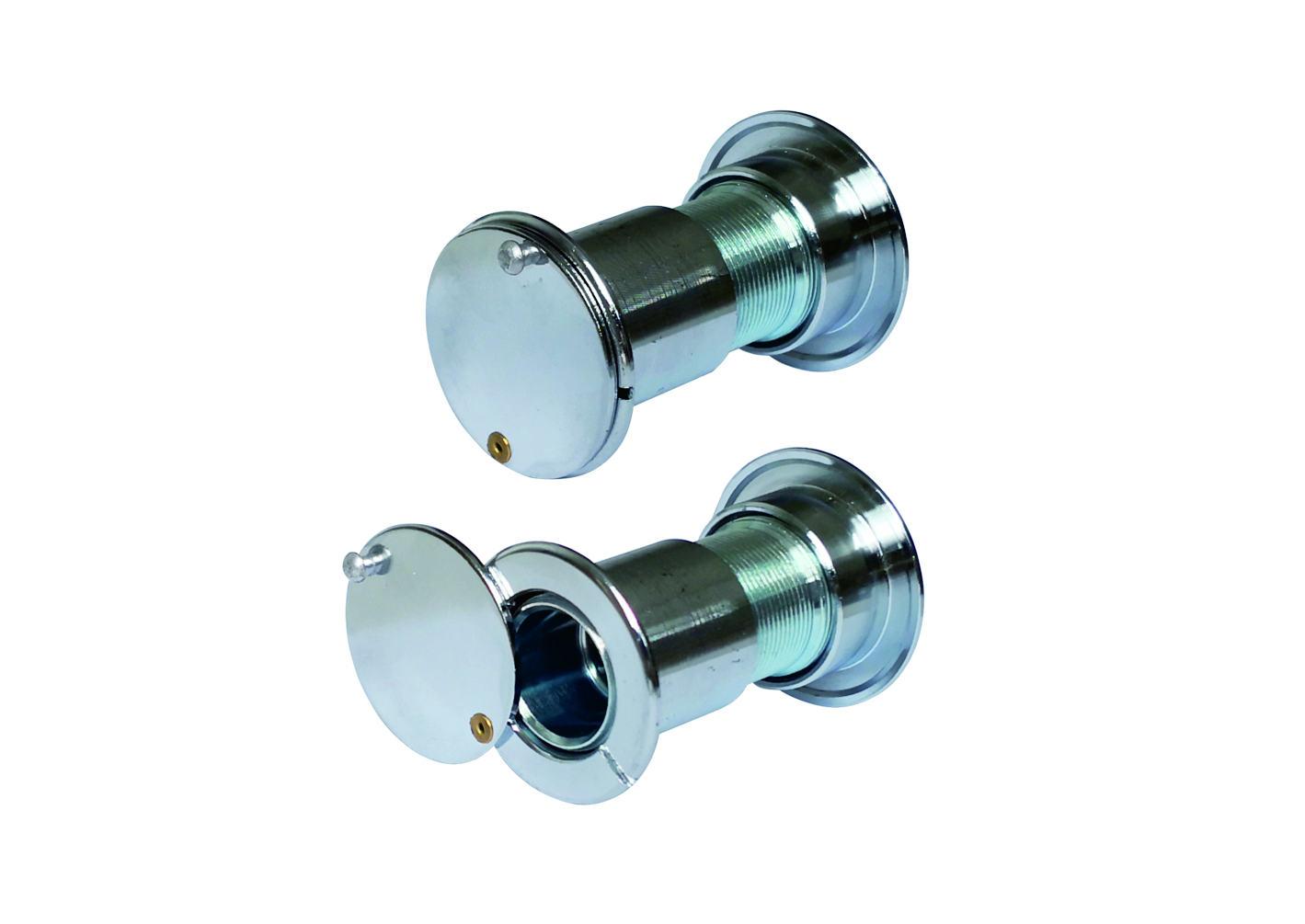 防火門鏡是通過裝在門鏡芯套內(nèi)的高膨脹材料在火 災(zāi)溫度(≥180℃)下迅速膨脹發(fā)泡,在極短的時(shí)間內(nèi) ( 一般≤8 min), 將防火門窺視孔封堵, 起到阻止火 勢蔓延、煙氣、毒氣外溢的作用。本產(chǎn)品設(shè)計(jì)新穎、結(jié) 構(gòu)合理、光學(xué)鏡片組,視角廣闊、造型美觀大方。門鏡 所用金屬配件鍍鉻,具有防腐蝕、防氧化、性能穩(wěn)定、 使用壽命長、安裝簡便等。
